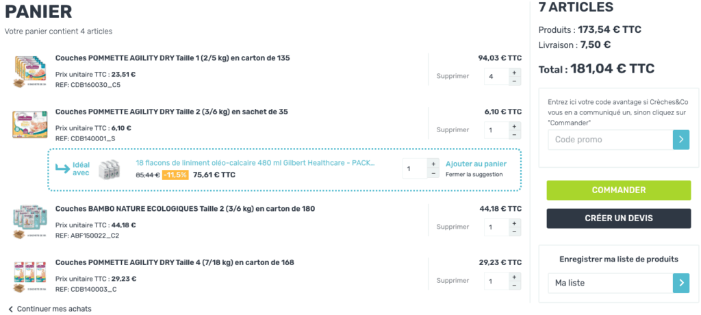 Vous avez constitué un panier que vous souhaitez commander plus tard ? Vous souhaitez enregistrer une liste de produits que vous commanderez régulièrement ? Tout d’abord, rendez vous dans votre panier. Dans la section « Enregistrer ma liste de produits », renommez votre liste de produits pour la retrouver plus facilement. Si le nom vous convient, cliquez sur « Enregistrer ».